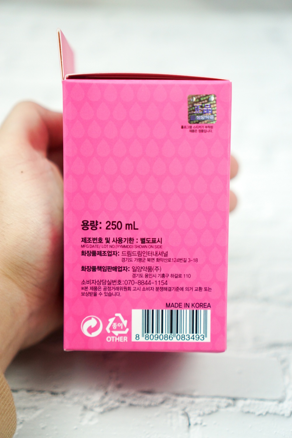 제품 단상자 옆면이에요.